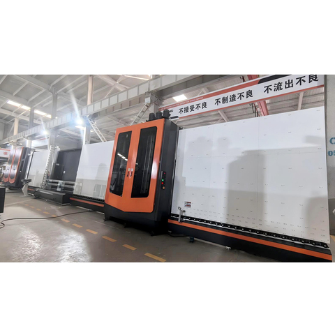 เครื่องทำกระจกฉนวนแนวตั้งอัตโนมัติขนาดจัมโบ้พร้อมเติมแก๊สอาร์กอนมอเตอร์ความจุสูง & PLC ออนไลน์